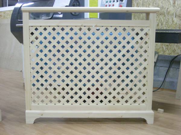 Cache-radiateur treillage à mi-bois en sapin rouge réalisé sur mesure